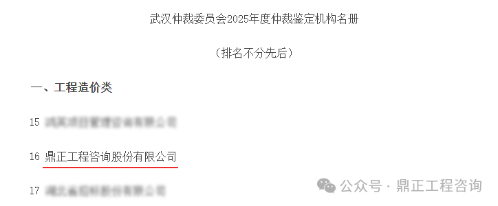 仲裁鉴定机构名册每两年遴选一次。本次遴选严格遵循《武汉仲裁委员会(武汉国际仲裁中心)仲裁鉴定管理办法》,结合仲裁鉴定工作实际,经公告、申报、评分、审议等程序,最终经严格遴选择优选聘。鼎正再度入选,既是对我司工程造价专业领域领先优势与扎实功底的权威肯定,更是对鼎正恪守执业规范、秉持公正立场的高度信任与认可。